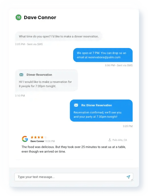 Easily identify who wrote the review, and respond to them directly with a private text or email conversation.