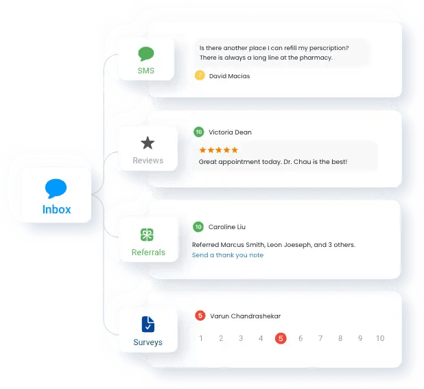 Give your teams access to every type of customer interaction in one spot – reviews, referrals, surveys, texts, email, voicemail, video chat, Facebook and more.